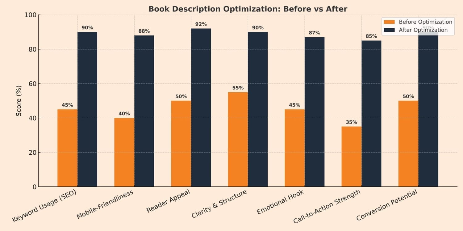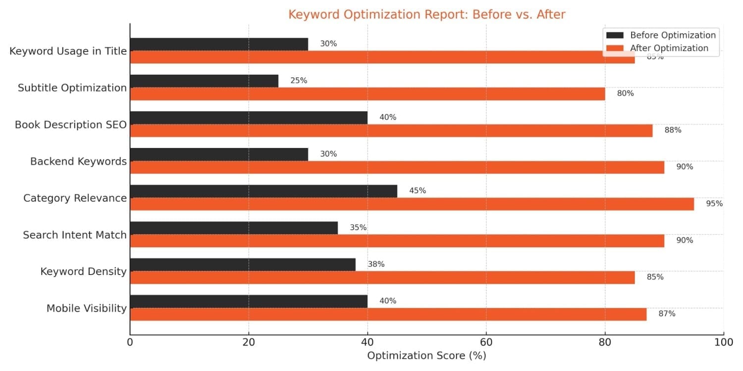 Make your ebook discoverable by the readers who matter most. We research and implement high-converting keywords to improve Amazon ranking, increase visibility, and drive organic sales. With precise keyword targeting tailored to your genre, your book will appear in the right searches, reach more readers, and maximize its potential all optimized for success within 2–4 business days.