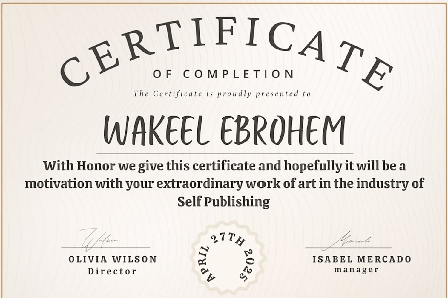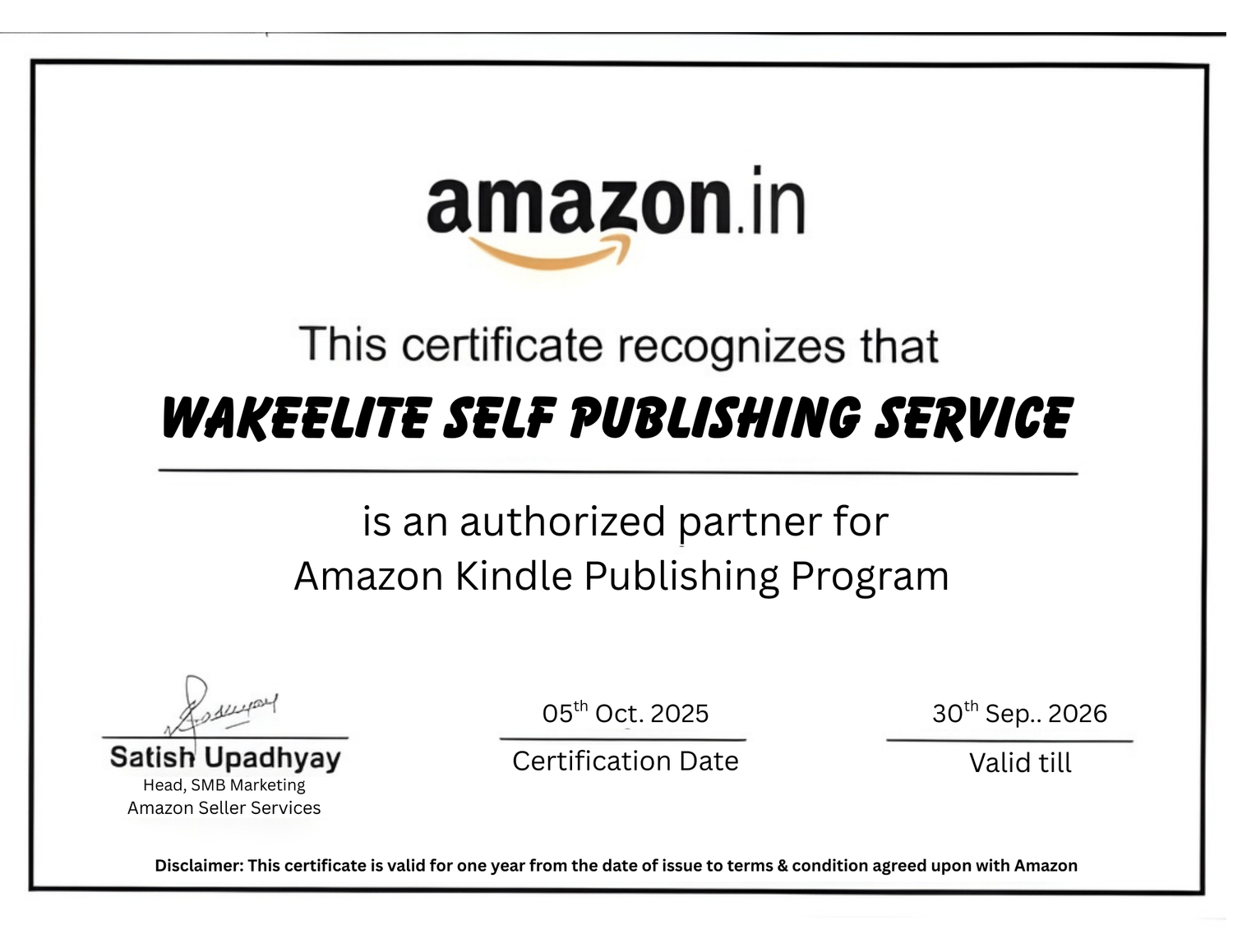 Wakeelite Publishing is led by a Certified Self-Publishing Specialists, ensuring expert guidance at every stage of your publishing. This certification reflects proven expertise in editing, formatting, book marketing, and Amazon publishing strategies."